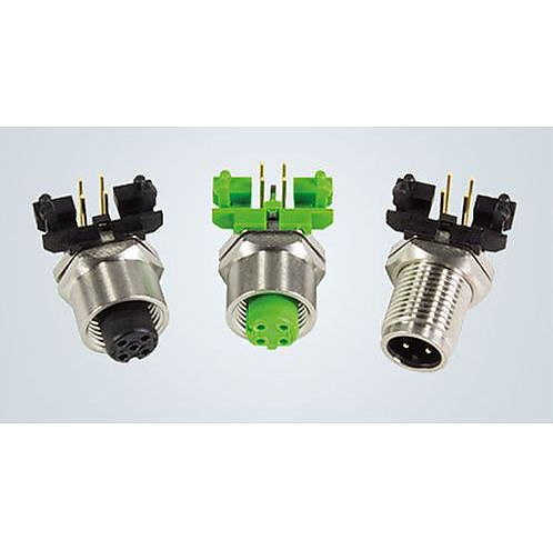 De nieuwe, ronde M12 PCB connector past met zijn 90° haakse constructie goed op print circuit boards die vlak in een rek of in apparatuur worden geplaatst. Door deze ruimtebesparing past de connector in de trend naar industriële miniaturisatie. Met de coderingen kunnen voedingsspanning en Fast Ethernet tot 100 Mbit/sec. worden aangesloten.