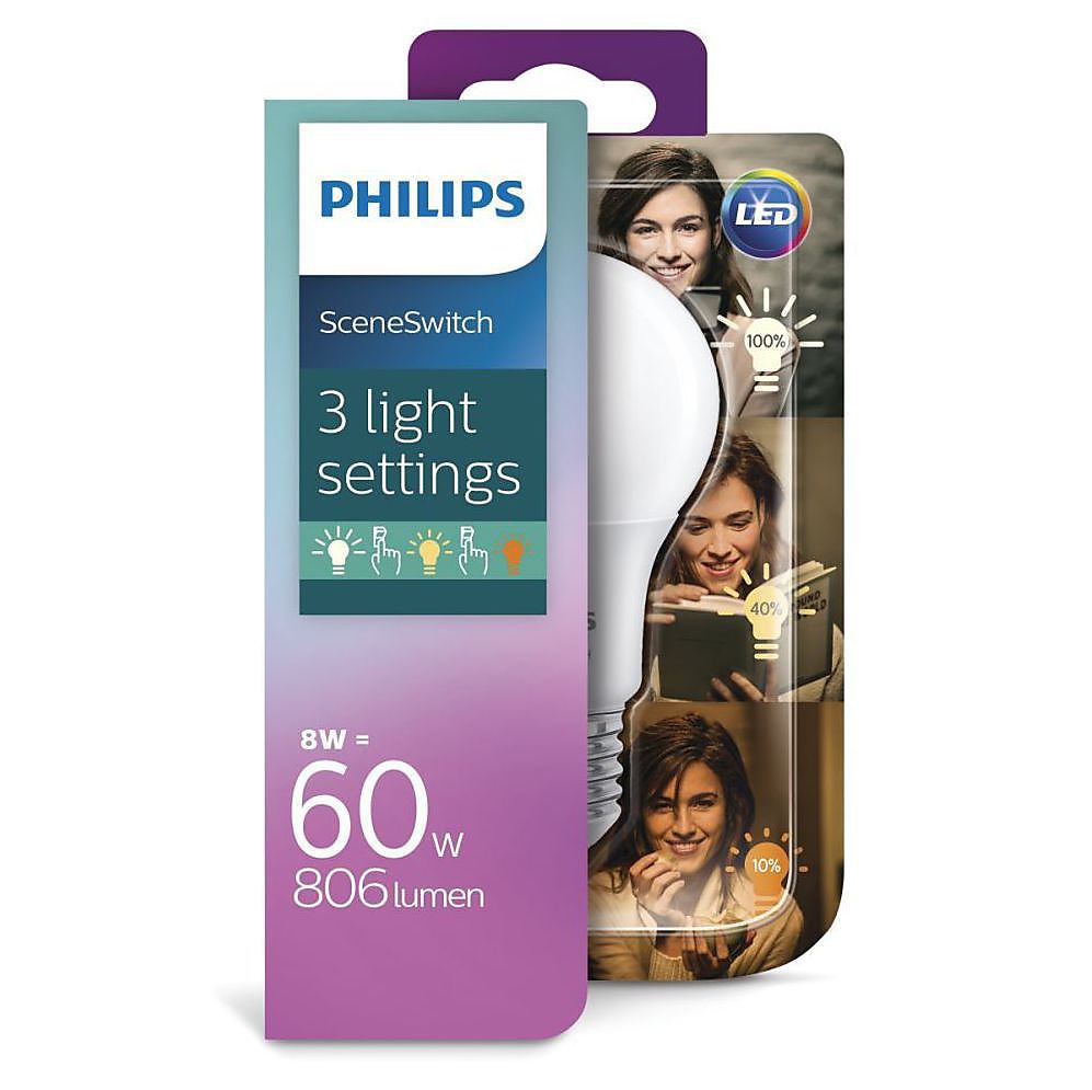 Anders dan standaard LED’s bieden de SceneSwitch lampen meerdere instellingen zonder dat daarvoor een dimmer geïnstalleerd hoeft te worden. De mogelijkheden gaan van een helderder, intenser licht dat helpt concentreren en elk detail op te merken, naar natuurlijk licht dat een uitnodigende sfeer schept om vrienden te ontvangen of te ontspannen met een boek. Ook een zachte, warme gloed is perfect mogelijk.