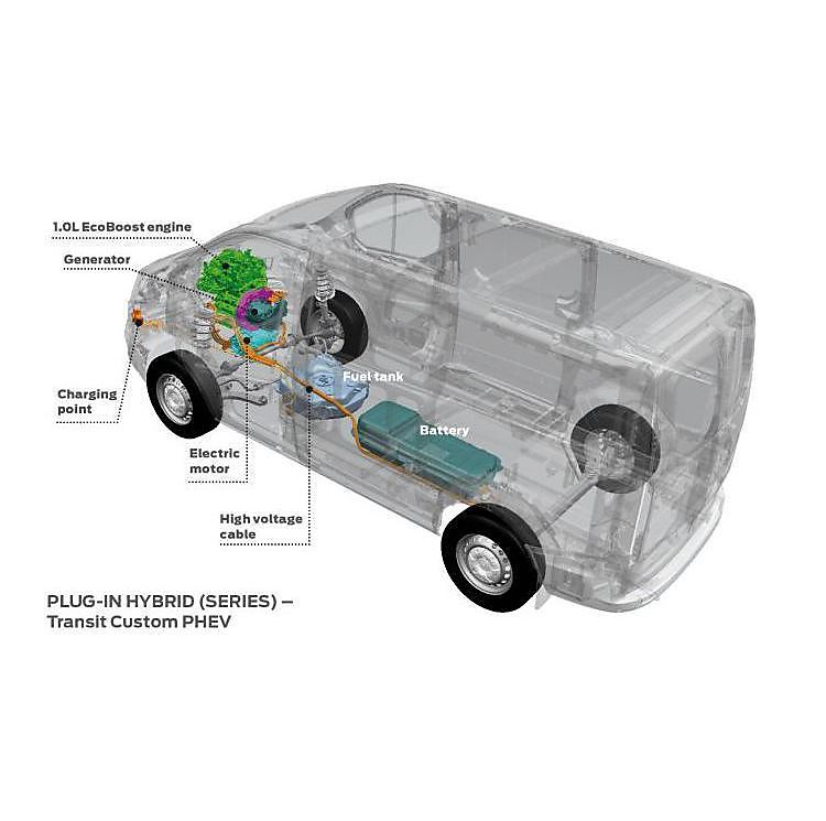In het Verenigd Koninkrijk werd de Ford Transit Plug-in Hybrid voorgesteld. De bestelwagen is uitgerust met de PHEV technologie, die toelaat om ruim 50 km volledig elektrisch en uitstootvrij te rijden, terwijl de 1.0 liter EcoBoost het mogelijk maakt om de batterijen, indien nodig, verder op te laden. De wielen van de Transit Custom PHEV worden volledig door de elektrische motor aangedreven en het compacte, vloeistofgekoelde lithiom-ion battery pack bevindt zich onder de laadvloer, waardoor het volledige laadvolume van de traditionele Transit Custom behouden blijft. De productie van de Transit Custom PHEV gaat wellicht in 2019 van start.